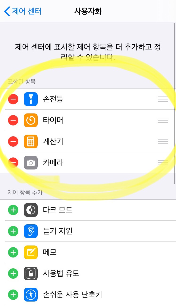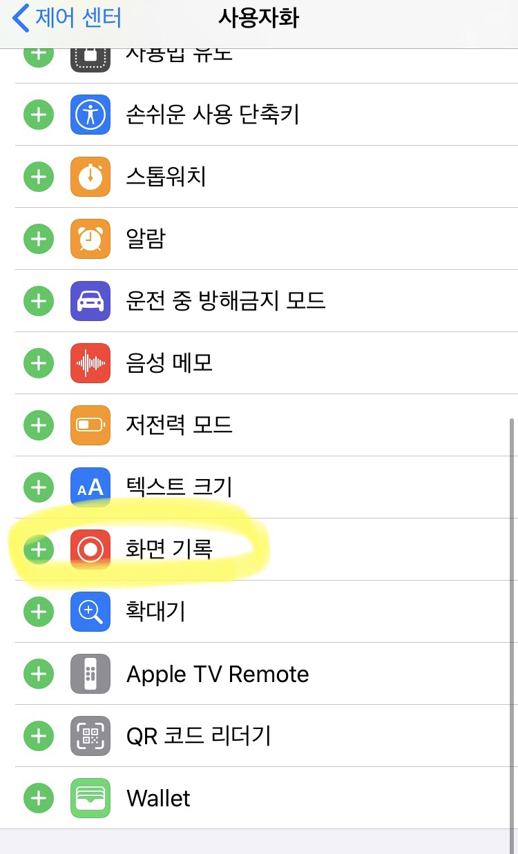 저의 경우 계산기를 빼고 화면기록을 추가하기로 했으므로 화면기록을 추가했습니다. 원하시는 거 그냥 추가하시면 됩니다!
